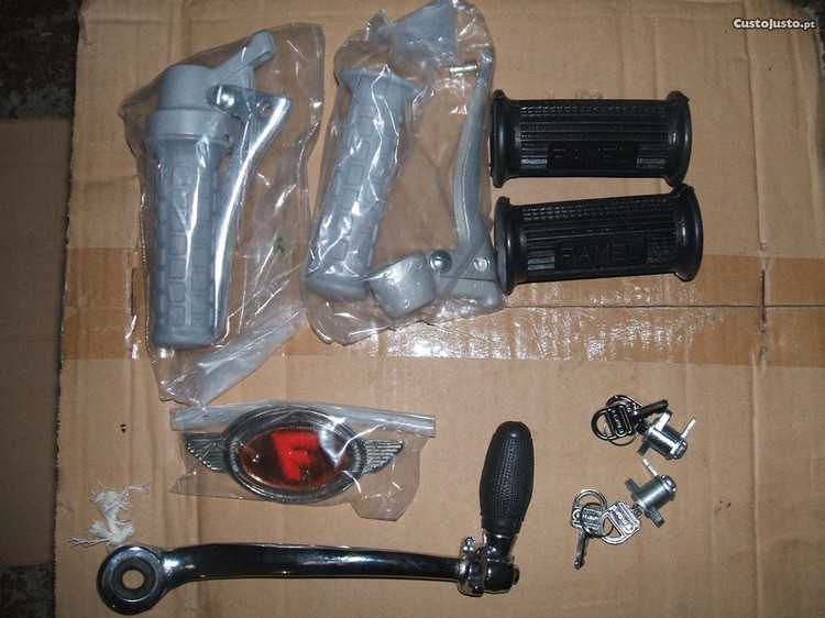 vendo peças para famel zundapp modelo gt 73,pedal quix,borrachas pousa pés,fechos das malas,simbolos deposito,conjunto de cepos com manetes e punhos