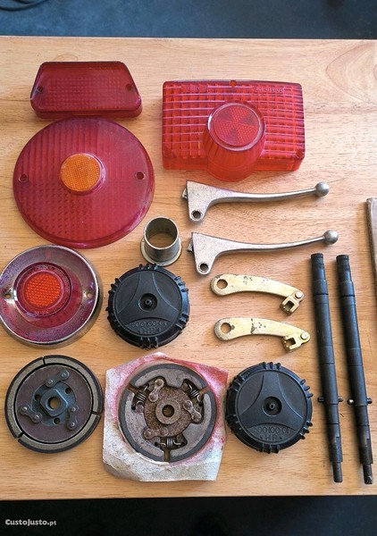 Tampas depósito HP, embraiagens Sachs minor, vidros de farolim, veios de mudanças, muletas travão, manetes casal carina, entre outras peças