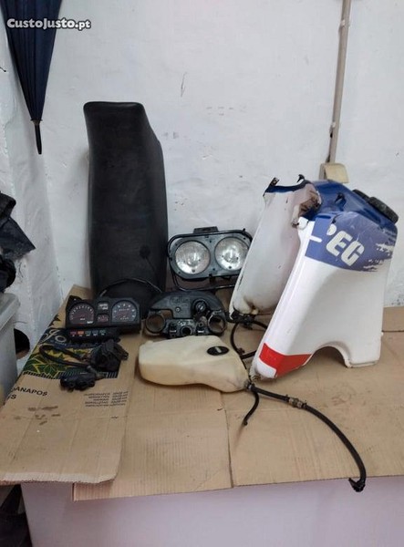 Material tuareg depósito de gasolina, manómetros, farol com aranha, banco, canhão de ignição, reservatorio de agua, bomba de travão traseira