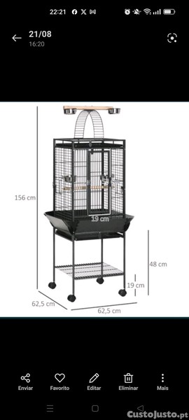 Tenho 1 uma Gaiola para papagaio para vender a Gaiola está nova ainda dentro da caixa está selada nunca foi utilizada