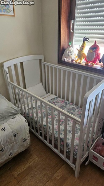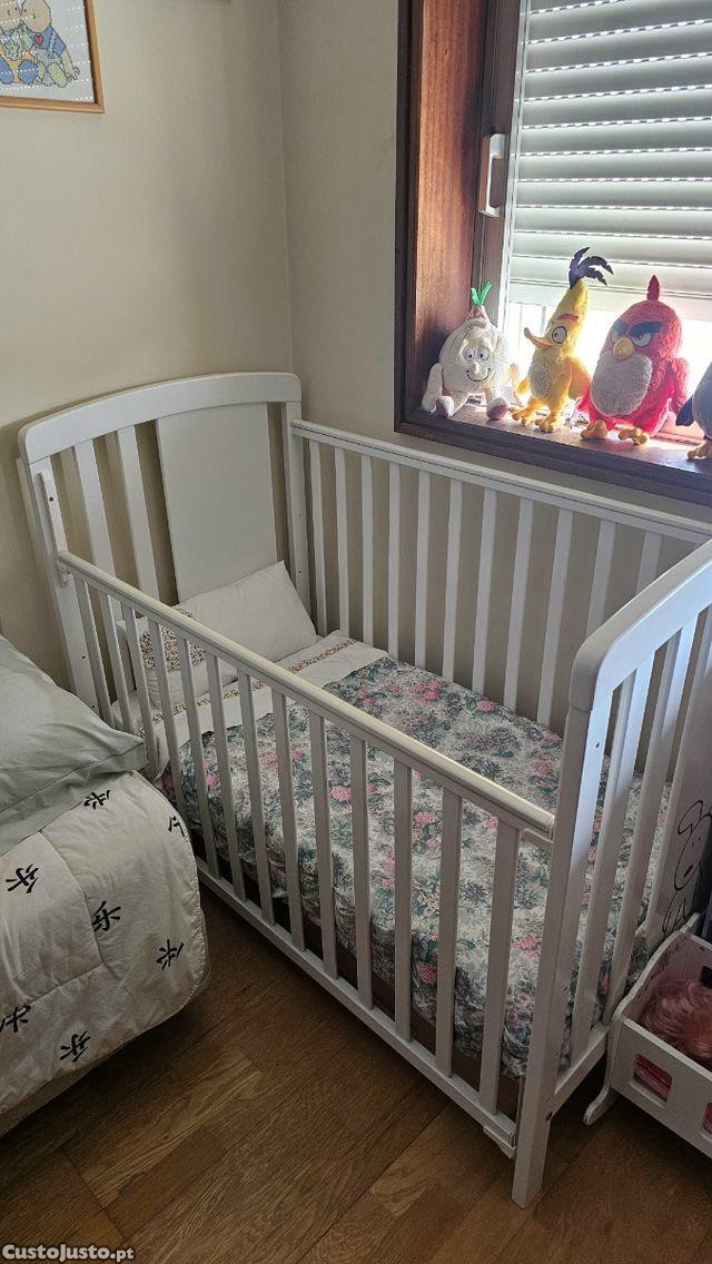 Conjunto de cama de bebé em madeira branca, ideal para o descanso do seu filho. Inclui colchão e edredão.