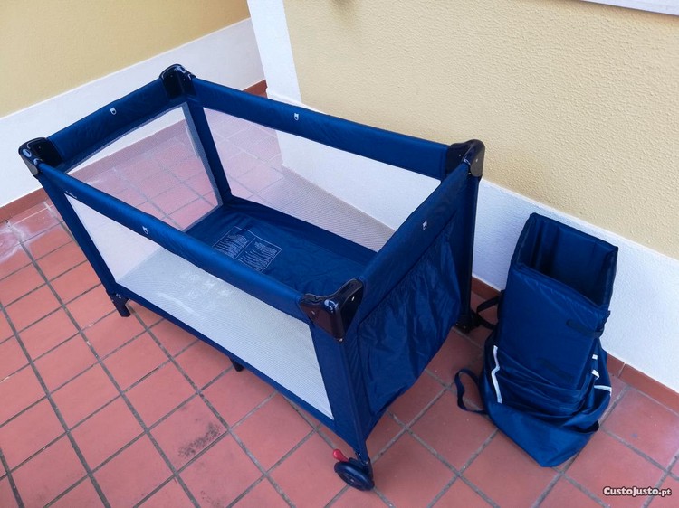 Berço de viagem grande, robusto e seguro, onde seu bebê pode dormir ou brincar.