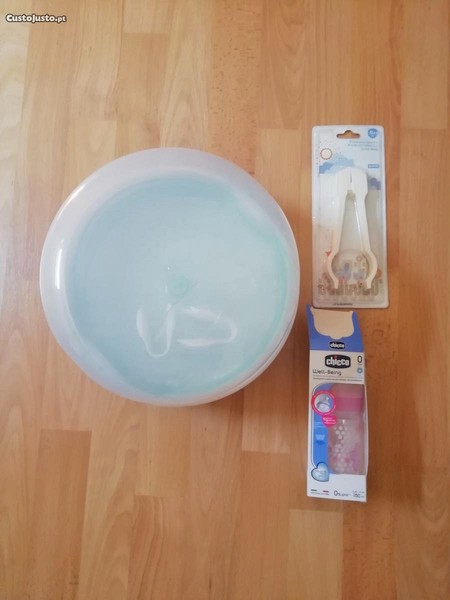 Vendo esterilizador de Microondas, biberão e pinça para biberão.