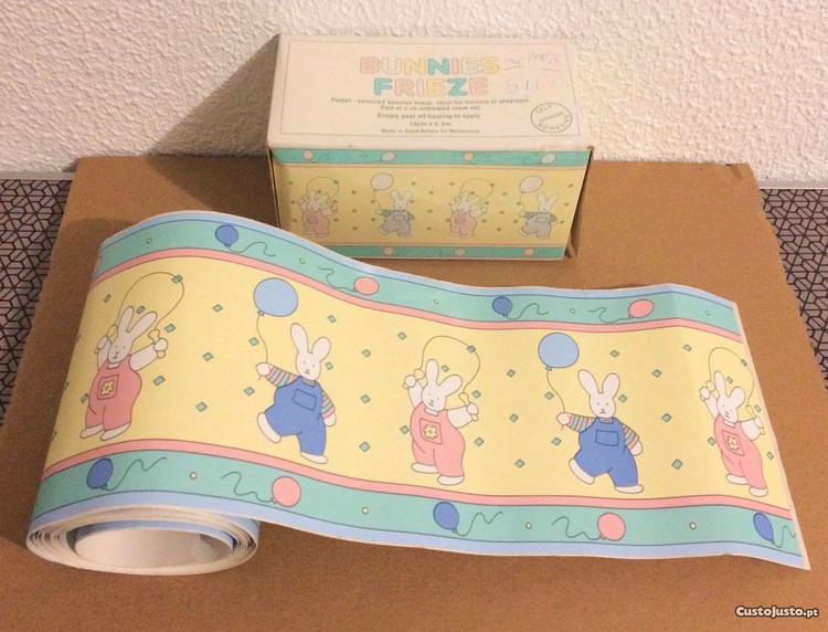 Preço: 2 €Friso decorativo autocolante para quarto de bebé - 15 cm X 5,5 m (Nunca Usado)