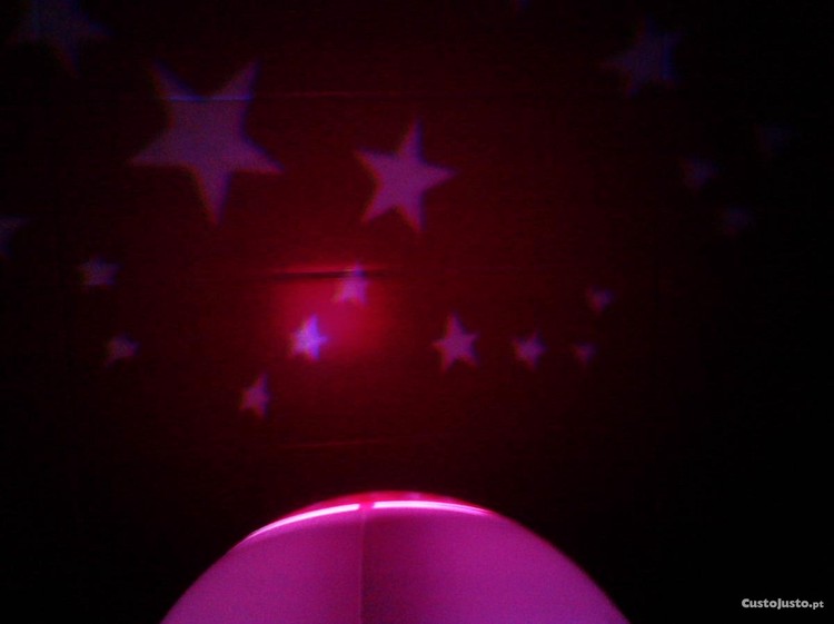 Candeeiro de bebé da marca Chicco. Ilumina todo o quarto, refletindo estrelas em movimento. Faz uma iluminação de encantar, até os adultos gostam. Também emite várias músicas de embalar. Tem 3 funções: só luz, só música e luz mais música. Funciona a pilhas.