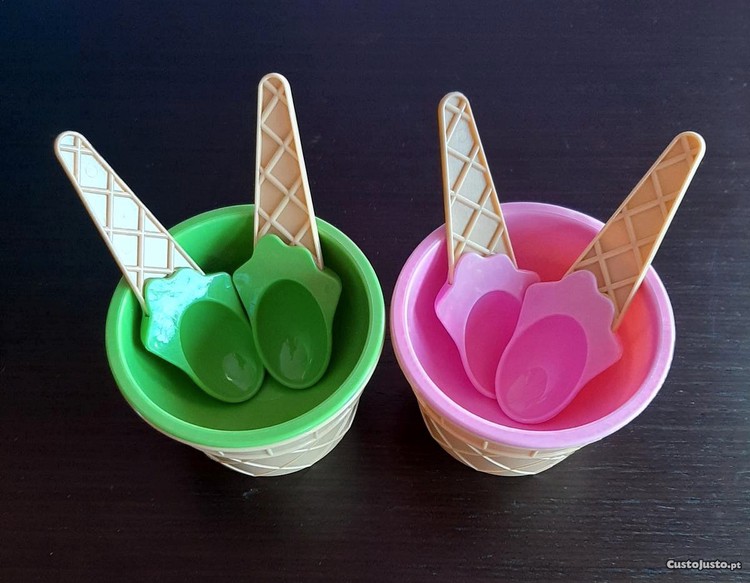 Preço: 8 €NOVO 2 Taças coloridas + 4 Colheres para Gelado