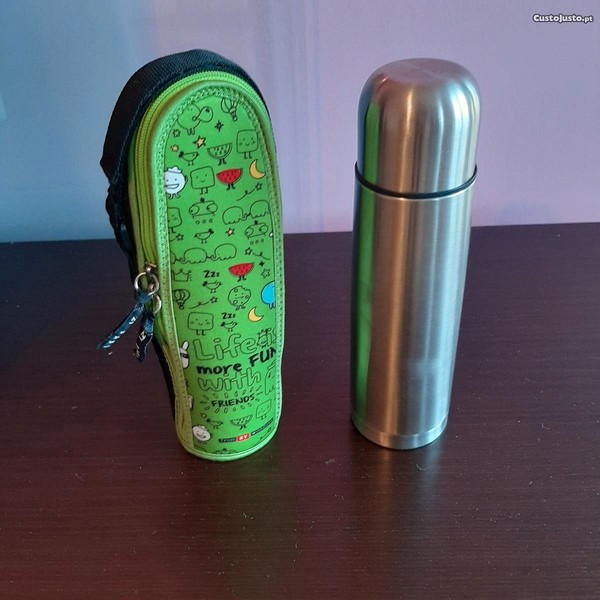 A capa alcochoada mantém o termo nas melhores condições. Tem também uma pega que ajuda a transportar.