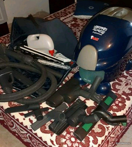Aspira a fundo, lava a vapor e purifica o ar. Está em bom estado.