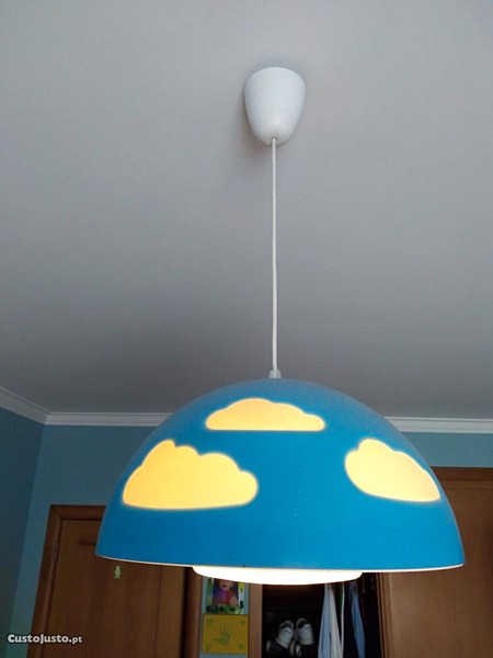 Preço: 30 €Candeeiro de Tecto Quarto Criança Azul com Nuvens