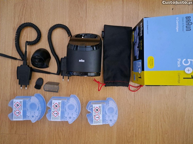 Preço: 65 €Estação carga e limpeza máquina barbear Braun (3 recargas e acessórios)