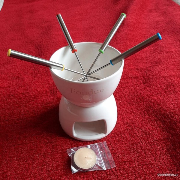 Preço: 15 €NOVO Fondue de chocolate em cerâmica com 4 garfos + vela