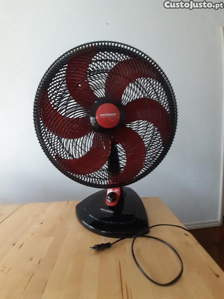 Ventoinha, com 3 velocidades, botão para rodar automaticamente e 50 centímetros de diâmetro. Foi usada