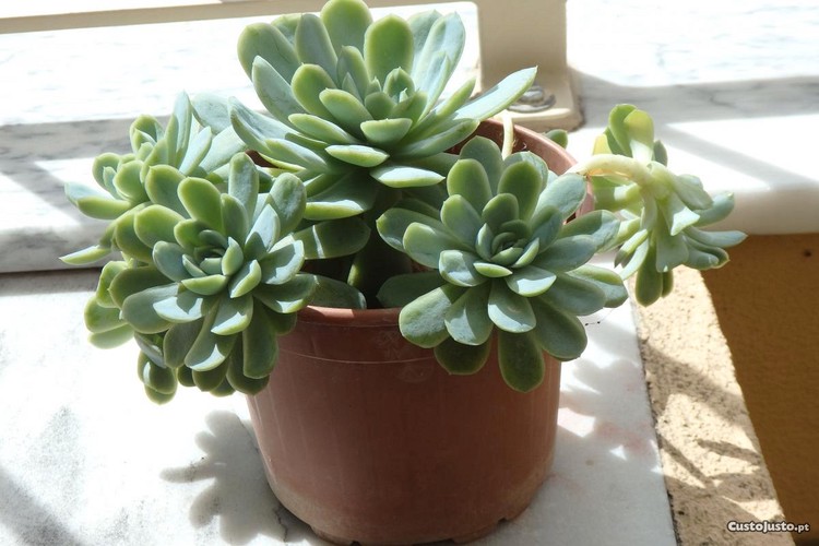 Echeveria (rosa de pedra), aloe juvenna e planta de Jade (crassula Ovata).