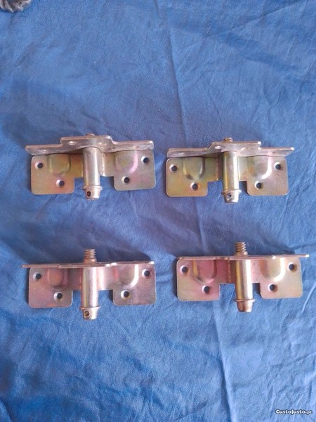 Conjunto completo de 4 ferragens para cama. São feitas em aço zincado passivado a dourado. Medem 3,5 x 3,5 x 9,6 cm. Estão novas, nunca foram usadas. Não vendo à unidade, só o conjunto todo e o preço anunciado é o do conjunto. Barato para desocupar. Negociável, vendo pela melhor oferta.