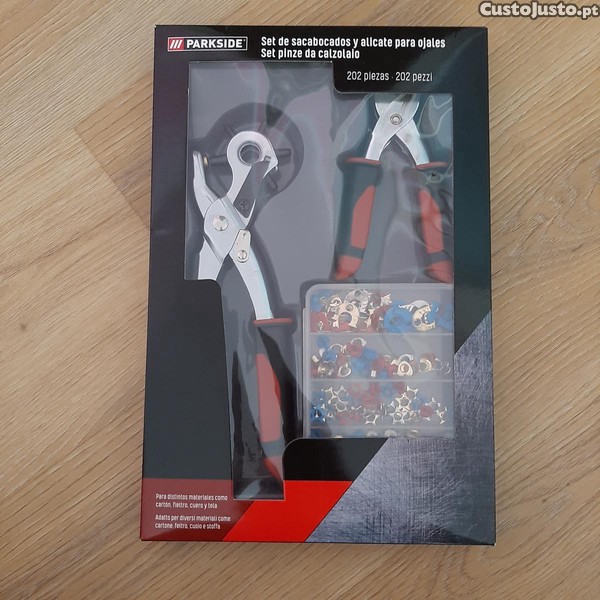 Preço: 12 €NOVO Conjunto de Alicates de Perfuração e Fixação Ilhós