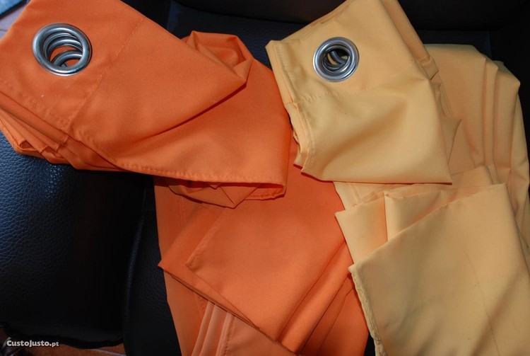 cortinados janela pequena 8 argolas cor um Amarelo e outro Laranja