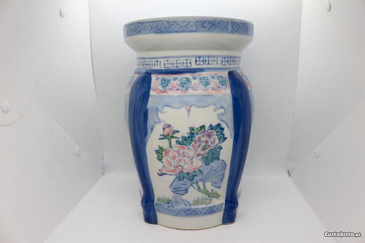 Preço: 165 €Tamborete Porcelana Chinesa decoração policromada e azul XX