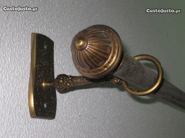 Um varão em bronze com os respectivos acessórios e terminais. Têm mais de 50 anos. Medida de comprimento: 2,60 m. Diâmetro: 4 cm.