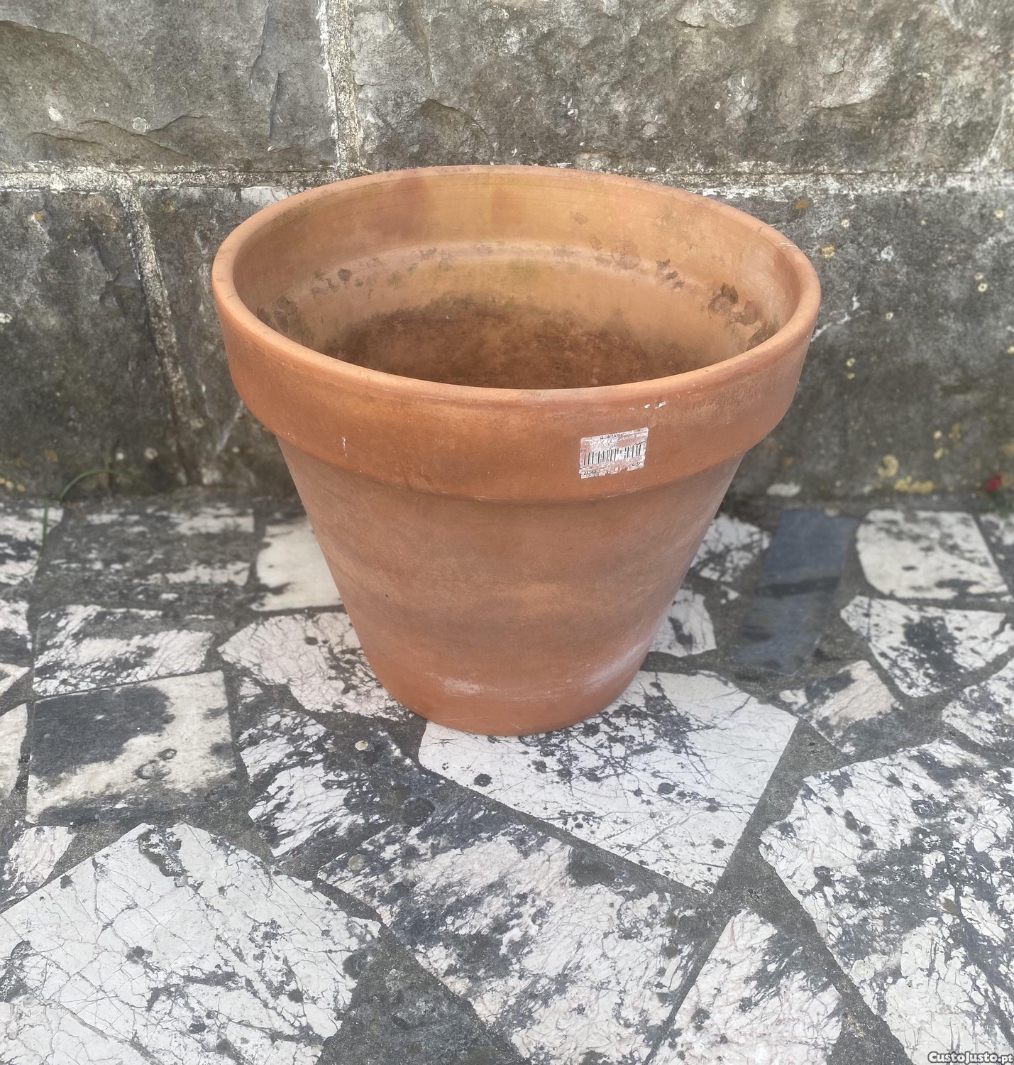 Vaso de terracota grande usado, com marcas de uso visíveis. Ideal para plantas e decoração de ambientes internos ou externos. Peça rústica e resistente, com design clássico.