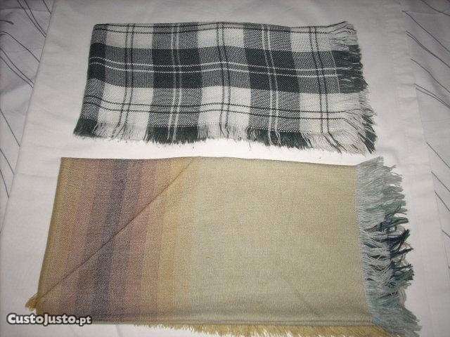 2 Lenços com franjas. Medidas 88x88 cm e 80x80 cm.