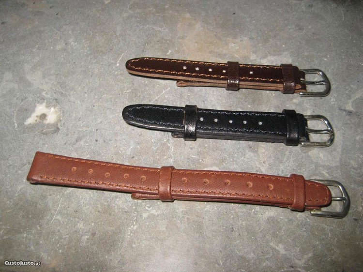 Vendo 3 Braceletes em pele genuína - 2 castanhas e 1 preta - para relógios tradicionais de senhora, NOVAS.