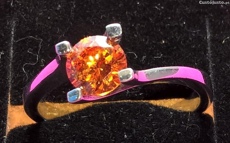 Vendo anel em prata de lei 925 com pedra zircônia laranja .