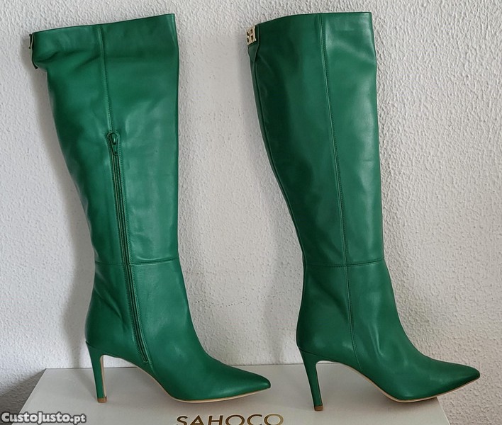 Botas Altas de Tacão Sahoco, verdes, tamanho 38, nunca usadas, a estrear, ainda embaladas.