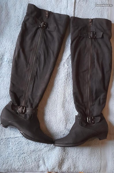 Botas de cano alto (acima do joelho), em cor preto e número 37.