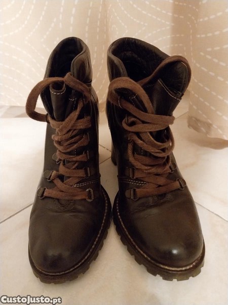 Botas castanhas de salto alto. Marca Hera. Em bom estado no geral, mas com os saltos riscados, como se vê na última fotografia. Tamanho 36. Entrego em mãos nas zonas: Queluz, Belas ou Odivelas.