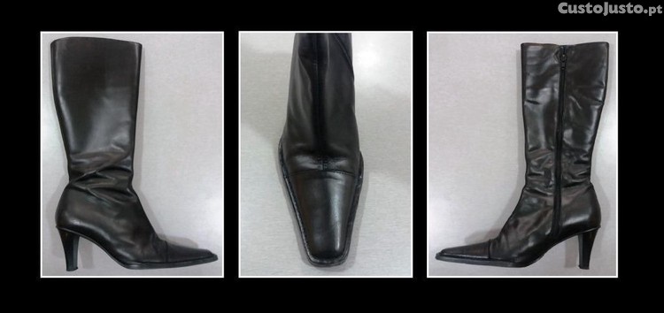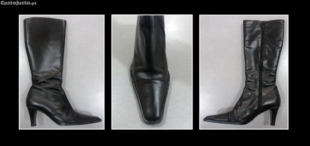 Botas de Cano Alto, n.º 39, em pele, com salto alto, em preto, excelente estado.