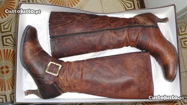 Botas de senhora em pele genuína cor castanha Sara Valente, n 38.