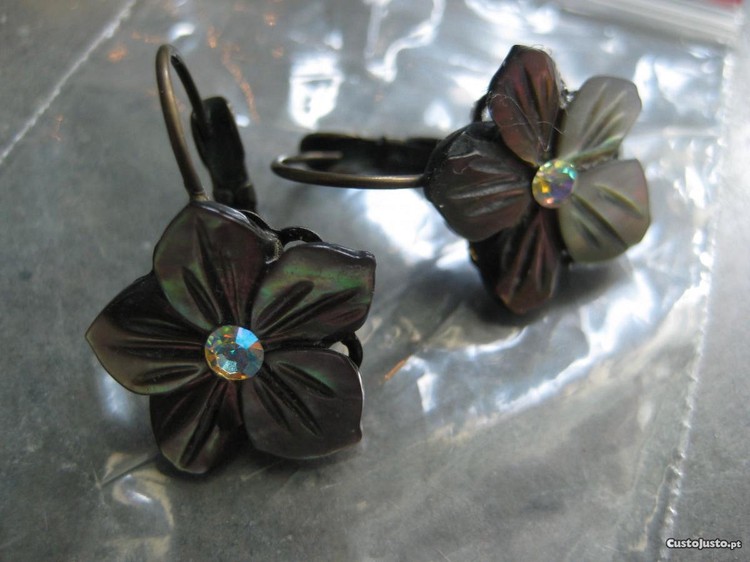 Preço: 10 €Brincos antialérgicos Pedra Dura,flor,nunca usados