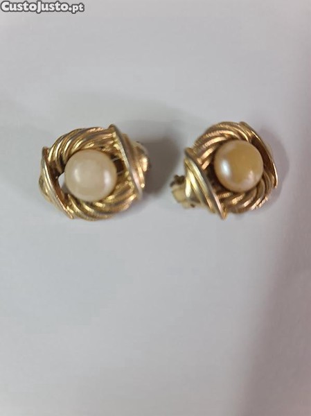 Preço: 25 €Brincos dourados com pedra creme
