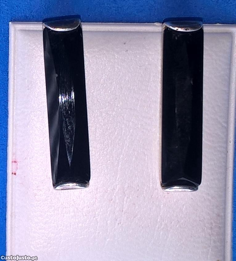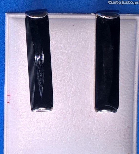 Brincos em prata com pedra de Onix . Medidas 2 cm X 0,5 mm . Inclui portes em correio registado .