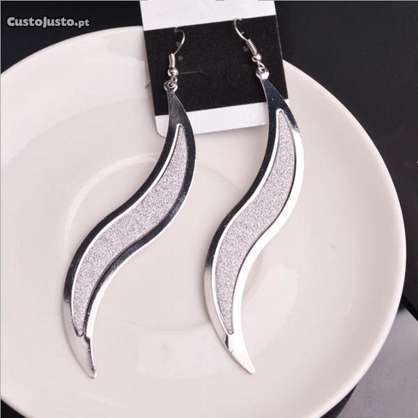 Brincos galvanoplastia metal fosco, brincos longos