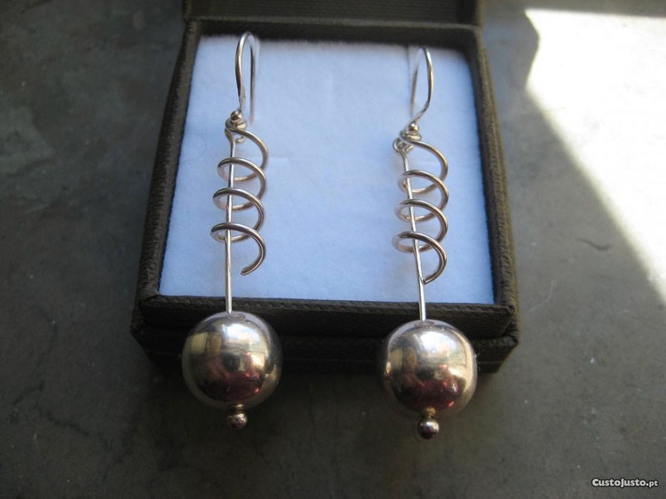 Vendo par de brincos em prata contrastada, pendentes terminando em bola, em estado Novo pois nunca foram usados(têm estado guardados).