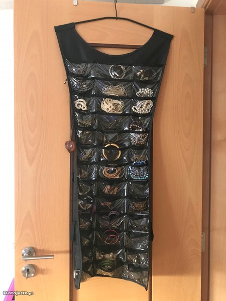 Cabide em preto para colocar no armário cheio de divisórias à frente para colocar bijuteria ou afins, na parte de trá pode pendurar fios, gravatas, cachecóis, encharpes, etc.