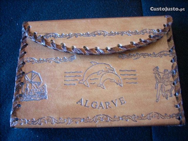 Carteira pequena de mão em cabedal trabalhado e em cor castanho. Artigo artesanal e novo.