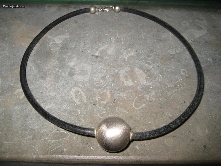 Vendo colar de couro com fecho e bola de prata(2cm diâmetro), usado uma única vez(presente que tem estado guardado).