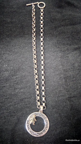 Colar de Prata com pendente a dizer "Mamã" e figura de um Menino.