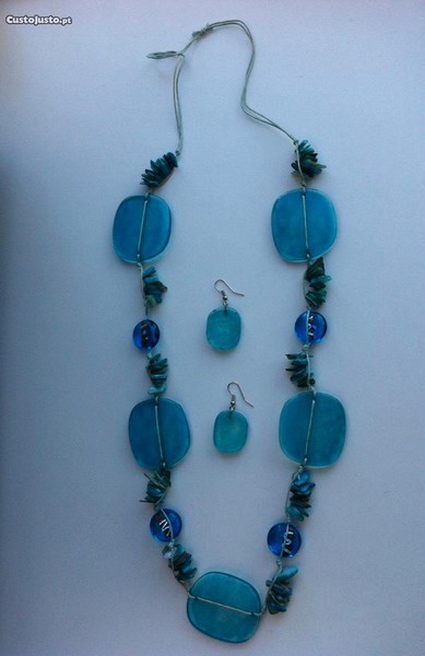 Preço: 15 €Colar e Brincos com Pedras Azul Turquesa
