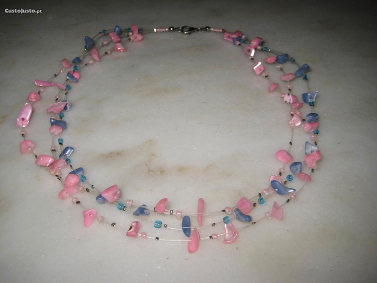 Vendo COLAR bijuteria Vintage , com pipetas em madrepérola rosa e azul, nunca usado(tem estado guardado).