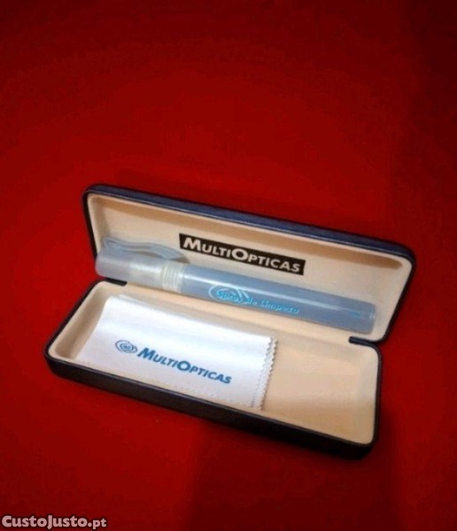 Estojo Multioticas, com fecho magnético, inclui pano e líquido de limpeza.