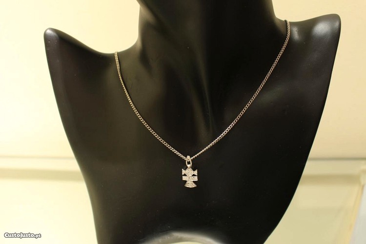 Fio malha batida e pendente em Prata 835 formato menina cravejado com pedras finas 7 gr fio grande 61 cm GRANDE