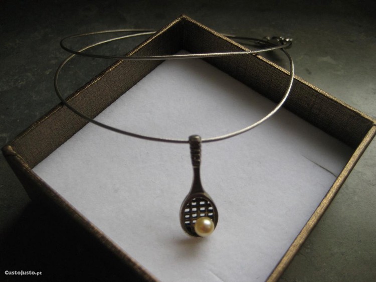 Vendo fio prata com pendente em prata contrastada(raquete em prata com pequena pérola), vintage, nunca usado(presente que tem estado guardado).
