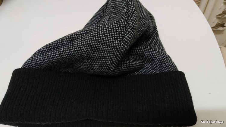 Gorro em fazenda, marca Verde bom forro de pelo. Cor preto aos quadradinhos brancos.