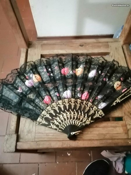 leque preto e com flores leque preto e com flores leque preto e com flores