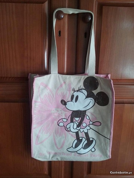 Vendo mala, tipo saco, alusiva à Minnie Mouse. Tamanho grande. O tom base é um creme/bege e depois os apontamentos de cor são em preto e rosa bebé. Com vários bolsos interiores, sendo que um deles tem fecho. Fecha com velcro. Original da Disney Resort Paris. Pode ser usada ao ombro ou na mão. Pouco uso. PREÇO NEGOCIÁVEL !