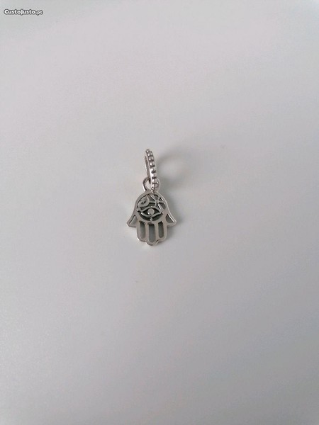 Peça de prata tipo pandora em formato de mão hamsá/mão de Fátima