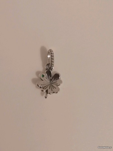 Peça de prata S925 em formato de trevo da sorte/trevo de 4 folhas com brilhante verde